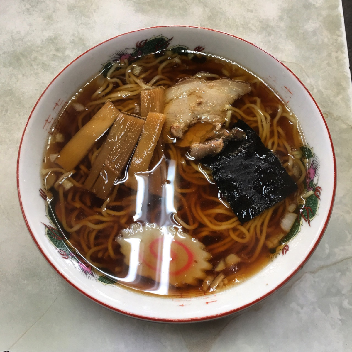The place is barely labeled; just a fabric drape in front of the doors that says 中華そば — “Chinese noodles”. I gathered the courage to go inside, where a woman who very well could have been there since the place’s founding in 1960, said, ラーメンしかないけどそれでいい? — “All we have is ramen, you want some?” I agreed and sat at a tiny table, surrounded by patrons of advanced age slurping their noodles and saying nothing. A man gave me a nudge and quietly encouraged me to use the stool at his table to set down my bag. Eventually my ramen showed up: the most standard, classic bowl of it you can imagine.